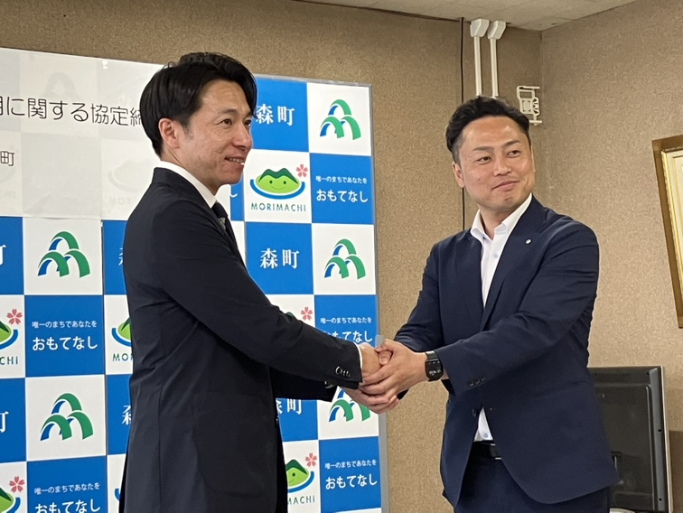 ㈱上田商会は北海道森町と災害時の施設駐車場の使用に関する協定を結びました。