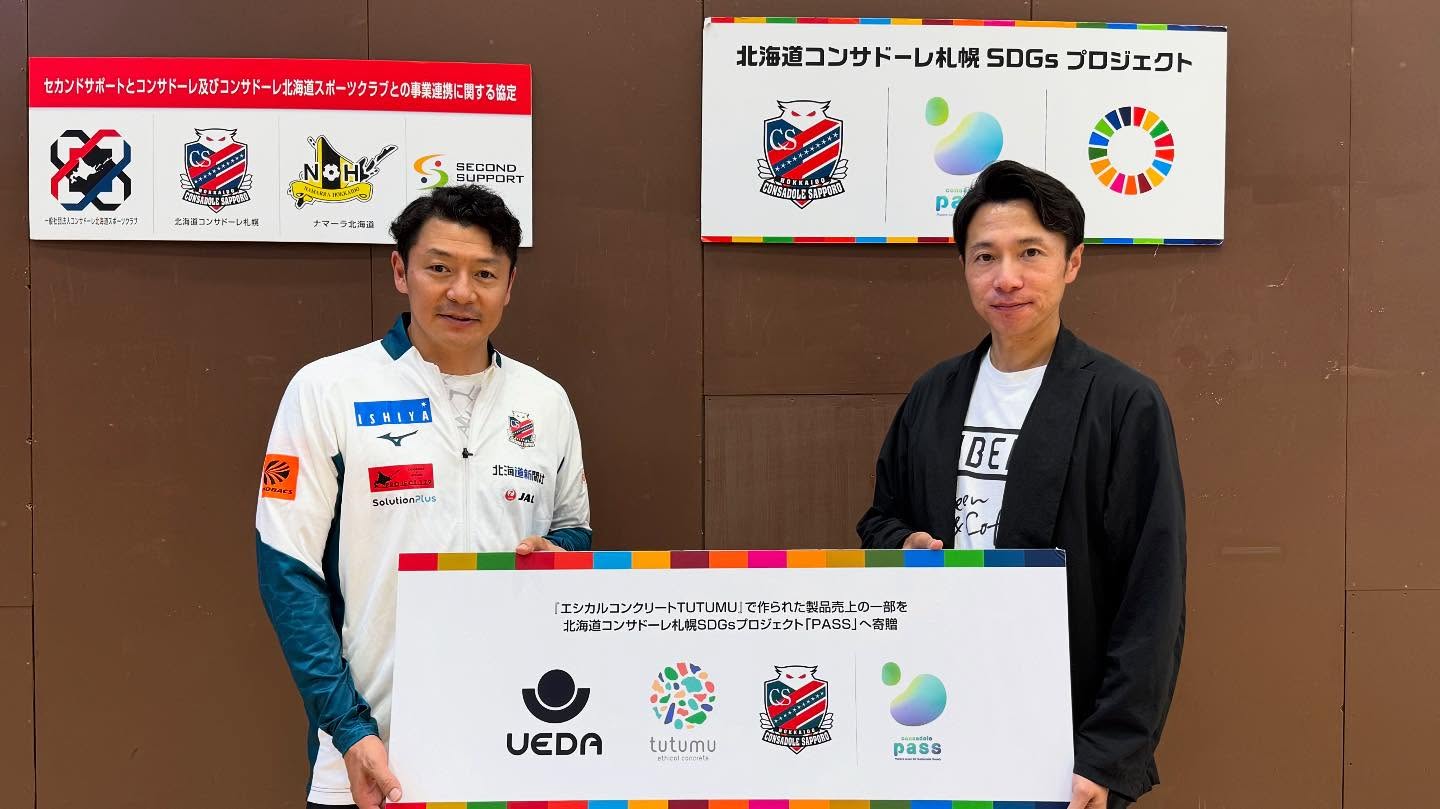 この度、私たちが製造するエシカルコンクリート「TUTUMU」の売上の一部を、北海道コンサドーレ札幌が展開するサスティナブルプロジェクト「PASS」に寄付しました。